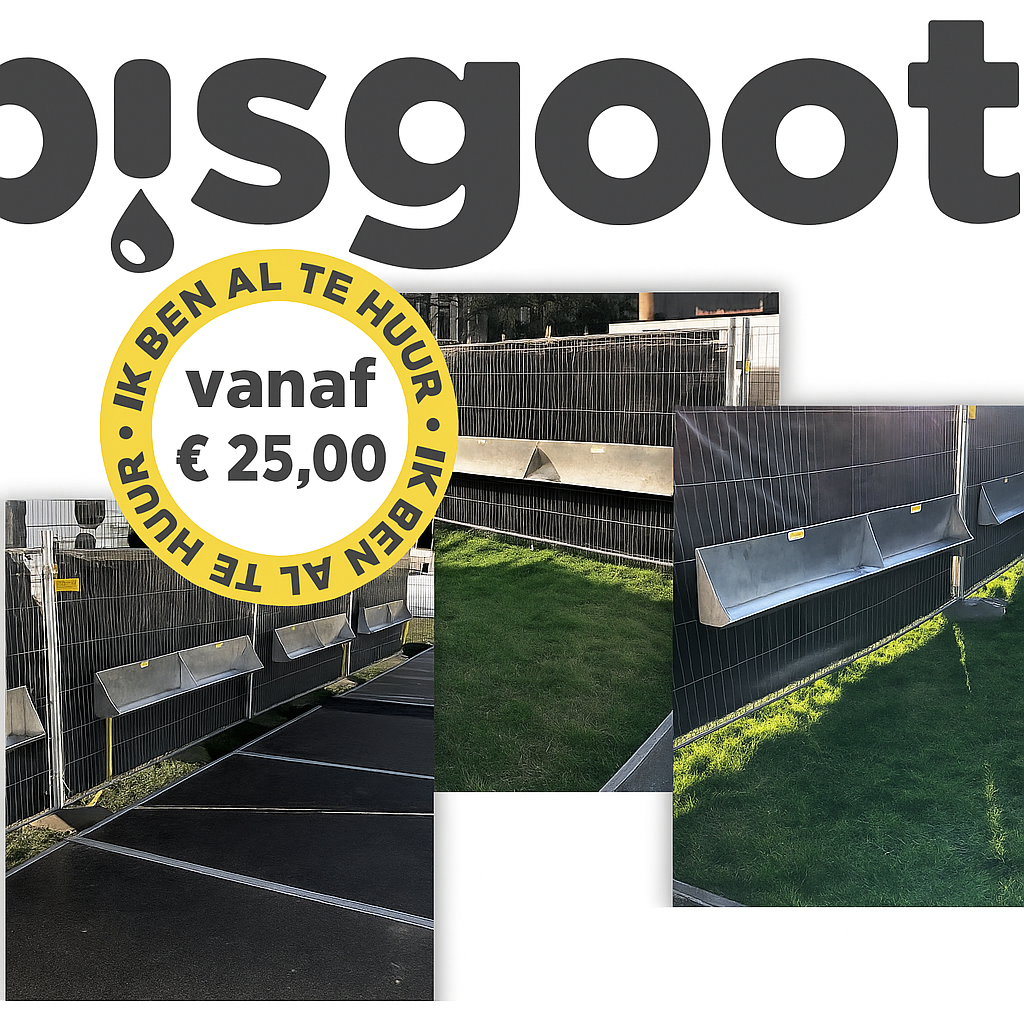 De RVS plasgoot is 3m lang en bied plaats voor maar liefst 6 personen. De plasgoot is makkelijk en snel te bevestigen aan een bouwhek op de door uw gewenste hoogte. Het afvoersysteem is eenvoudig aan te leggen door middel van een slang en daarna aan te sluiten op elke riool.